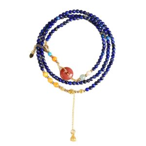 Elevate your style with this 2-in-1 lapis lazuli beeswax bracelet necklace! Handcrafted with natural Nanhong Ping’an buckle, this Chinese palace-style multi-layer crystal jewelry is a perfect vintage gift for women who love ethnic and healing crystal accessories.