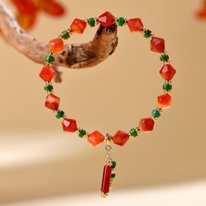 Natural Red Agate Color-blocking Minimalist Luxury Unisex Bracelet