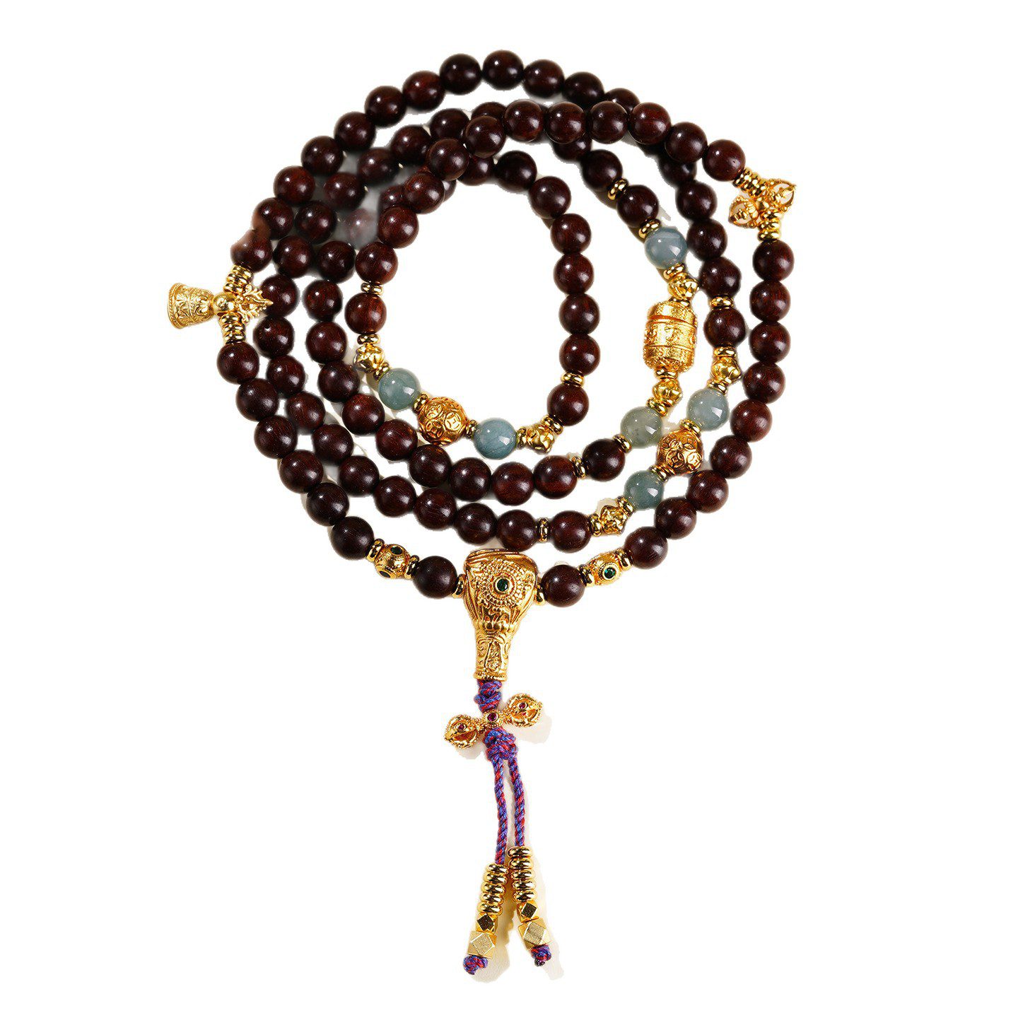 Elevate your spiritual practice and style with this natural sandalwood blue water jade 108 mala beads bracelet necklace! Handcrafted with vintage gold accents, this new Chinese style Buddhist jewelry is a perfect cultural gift for women who love meditation and ethnic fashion.