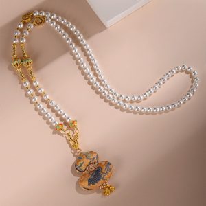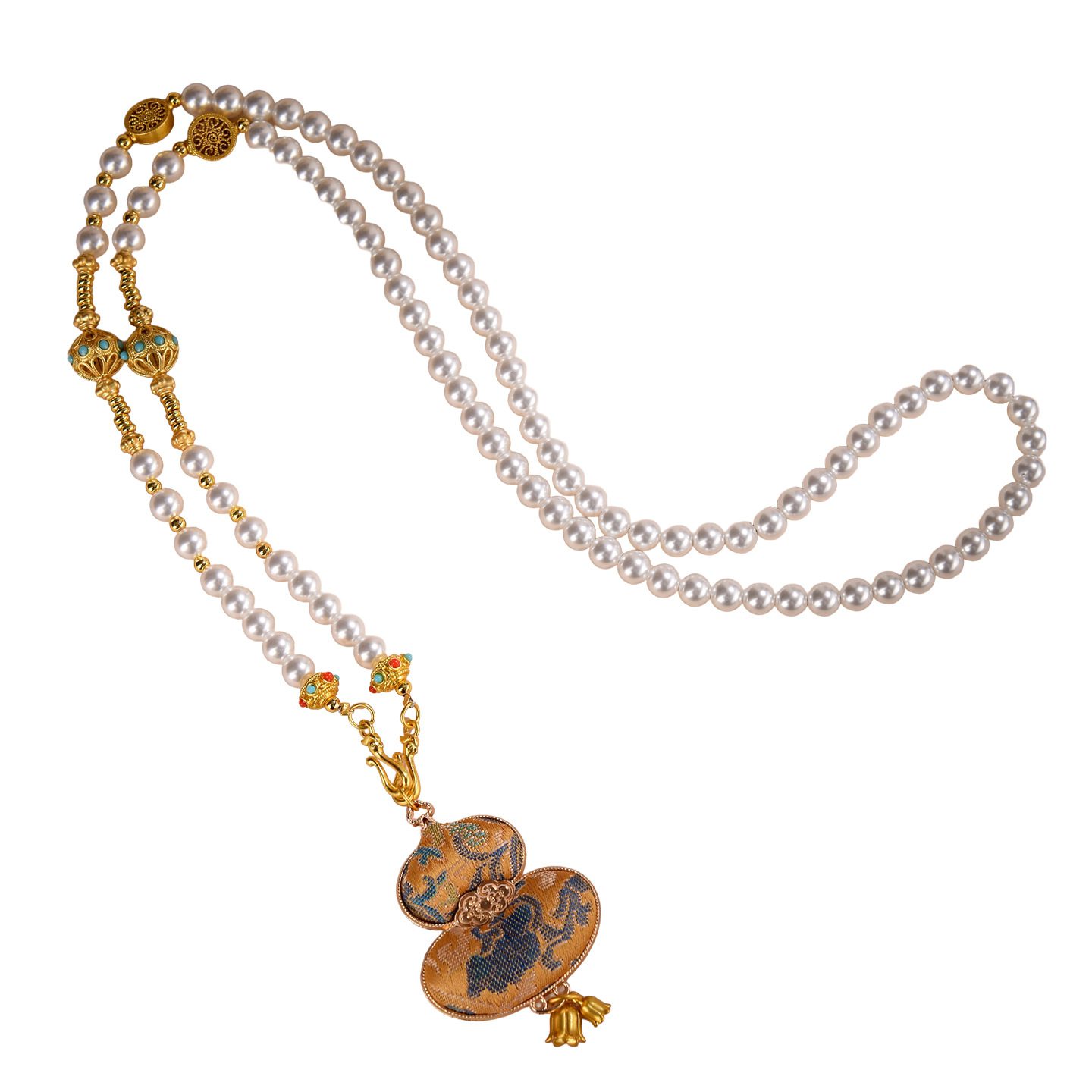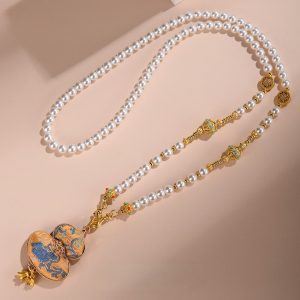 Elevate your new Chinese style look with this handcrafted Song brocade gourd pearl sweater chain! Featuring a vintage Fulu pendant, freshwater pearls, and traditional Chinese craftsmanship, this lucky necklace is perfect for cultural fashion lovers and everyday wear.