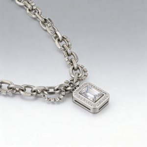 This titanium steel clavicle chain boasts a distinctive minimalist design, perfectly combining the sleek sugar cube zircon with a sturdy chain, exuding a laid-back hip-hop vibe. It is a unisex piece that complements wheat skin tones, effortlessly pairing with hoodies, sweaters, and various outfits. The understated design carries a subtle protective meaning, infusing your daily looks with a calm and confident aura, accompanying you as you switch between different styles with ease.