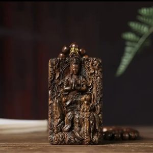 This Samantabhadra pendant is carved from carefully selected natural agarwood, featuring delicate wood grain and a lingering fragrance, with the energy to purify your aura. Samantabhadra Bodhisattva symbolizes virtue of principle and virtue of practice. Wearing it can help you eliminate distractions, relieve mental stress, and bring you good fortune and prosperity. It pairs perfectly with traditional Chinese style and casual outfits, guarding your peace of mind at all times.